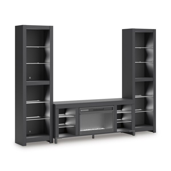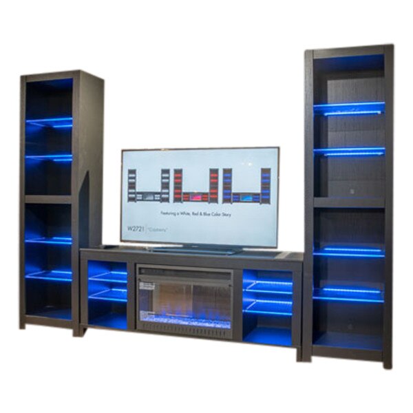 Level up your gaming experience and make movie nights to remember. This TV stand with electric fireplace extends your entertainment beyond the screen. Its built-in fireplace brings the heat, synchronizing with LED backlighting on the shelves. And you can customize the vibe with three trendy color options: blue, white and red. Modern function. Captivating, cool style. With this TV stand, revamp your home’s recreational hub like never before.