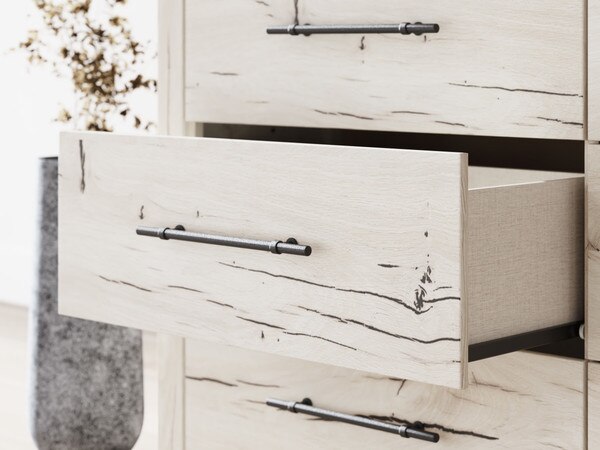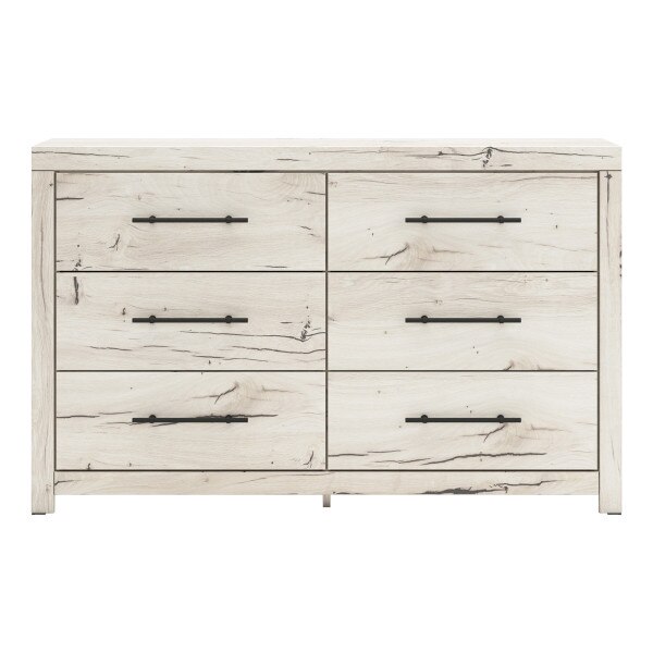 A fresh take on country living, this dresser strikes the perfect balance between farmhouse and contemporary. Its rustic white finish and replicated reclaimed oak grain merge effortlessly with the clean-lined look we love today. Spacious drawers help you keep clothes organized and put clutter in its place. You’ll love how the dresser's simple design transforms your bedroom into a harmonious haven.