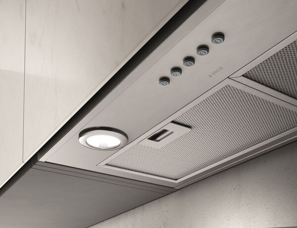 BLOWER: 400 CFM, 3-speed | CONTROLS: Electronic Silver Push Button with White Illumination | LIGHTING: 2 - 2.1 Watt LED Lamps, w/3000 Kelvin & 235 Lumens/lamp, 1 intensity (bulbs included) | FILTERS: 2 - Dishwasher Safe Anodized Aluminum Mesh | TRANSITION: 6" round (top) | SPECIAL FEATURES: Fully recesses into 12" cabinetry