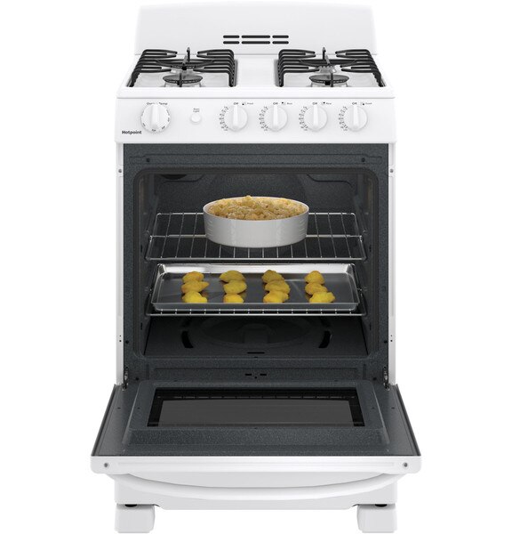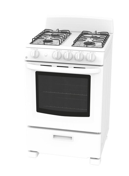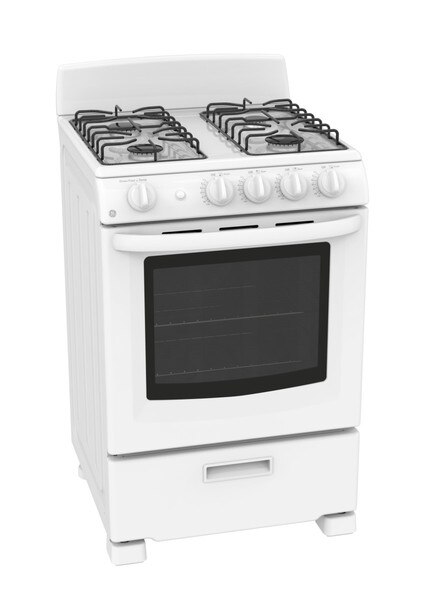 Prepare delicious home cooked meal with this 24" GE gas range. It features continuous grates with 4 sealed gas burners for even heat while you are cooking. It has 2.9 cu. ft. oven capacity and a storage drawer to help keep your utensils organized. This 24" range comes with a removable backguard to give it a free standing or slide-in configuration.