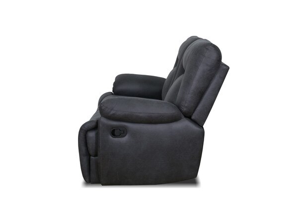 Relax in style with the Houston oversized reclining loveseat. Featuring deep-seated comfort and support with drop-in coil seating, the dark-grey performance fabric fits into any rooms decor.