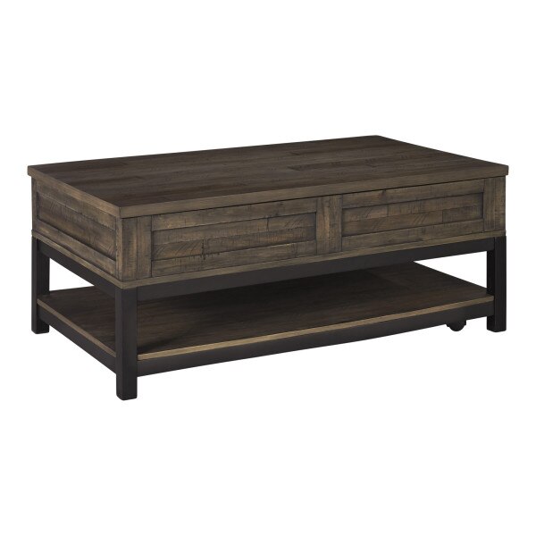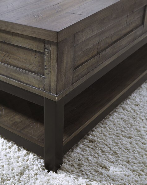 Combining a two-tone finish with a gently distressed texture produces one very distinctive lift top coffee table. Whether your style is modern farmhouse or urban industrial, this coffee table with a spring-lift top is the perfect accent for your rustic retreat.