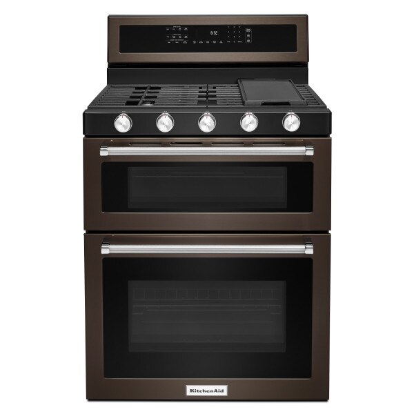 KitchenAid 30-Inch 5 Burner Gas Double Oven Convection Range CO-KFGD500EBS