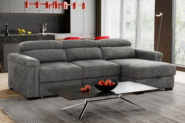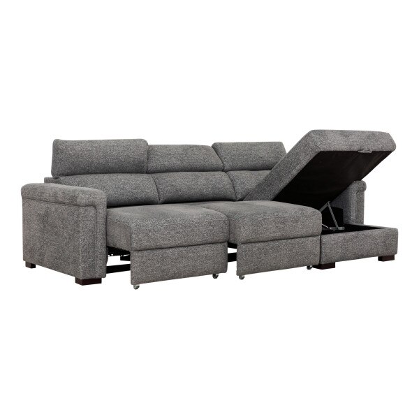 The sectional sofa that does it all! Lucius offers a smooth power-reclining seat that extends to a comfortable lounge or sleep surface and even offers built-in storage to stash away extra blankets and pillows.