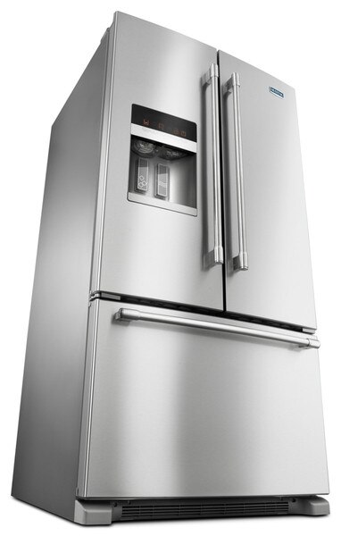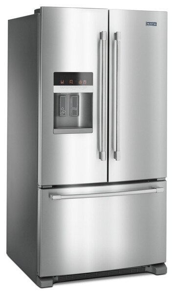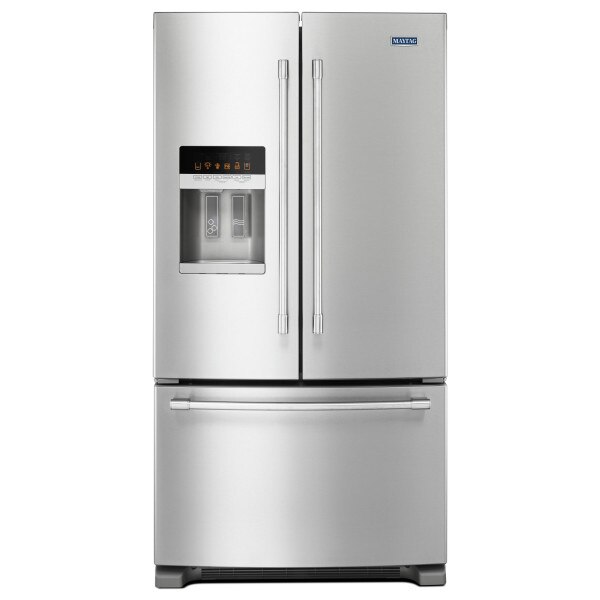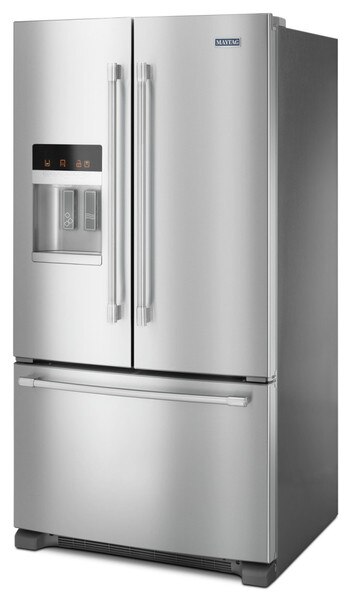 This Maytag® french door refrigerator is made with heavy-duty components and features that deliver the right kind of cold exactly where it's needed. It's available in Fingerprint Resistant Stainless Steel to keep this fridge looking as good on the outside as it works on the inside. With the touch of a button, the PowerCold® feature quickly chills down the refrigerator. The temperature-controlled Wide-N-Fresh™ deli drawer provides the perfect place to keep deli items so they stay fresh longer. And when it comes to durability, this french door refrigerator has stainless steel handles to give you something hardy to grab on to, while the 10-year limited parts warranty on the compressor means you can count on it hold the cold for years.