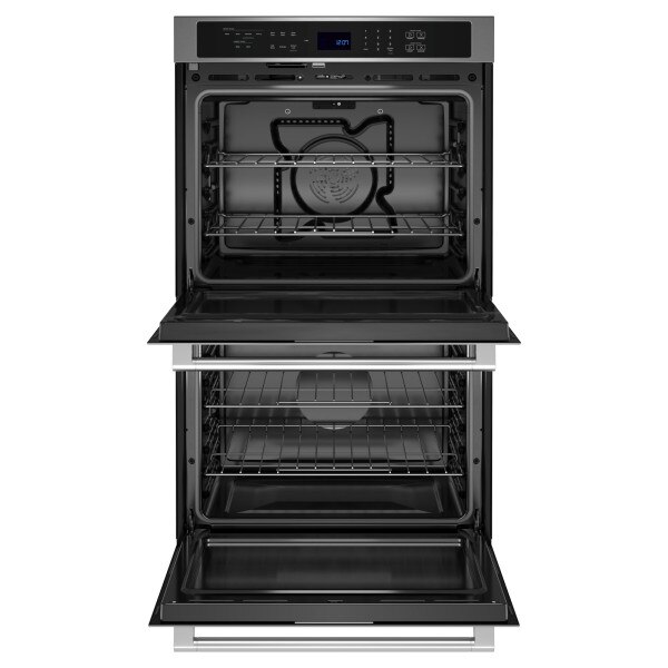 Cook what you want, when you want it in this Maytag® 27 inch double wall oven with air fryer. This wall oven air fryer combo is ready for whatever recipe you throw at it, backed by convenient features like No-Preheat Air Fry, True Convection and Variable Broil. Get quick, crispy results with No-Preheat Air Fry, even heat baking with True Convection and the char you want with Variable Broil.
