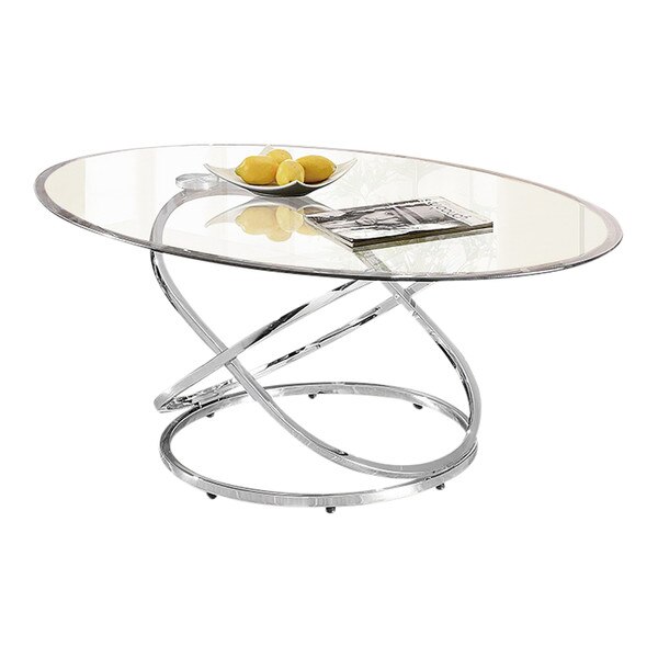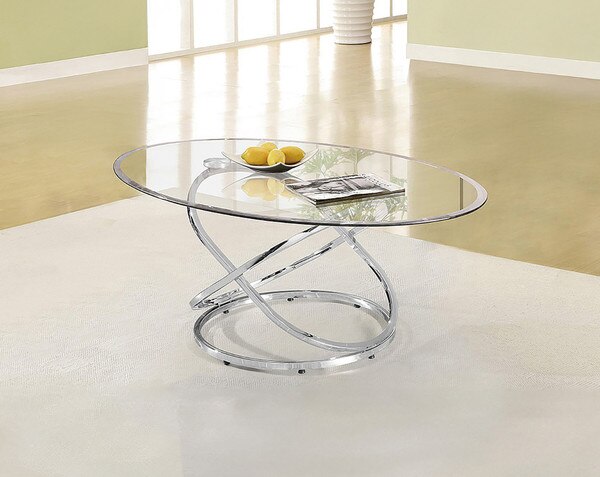 Designed to impress, the Sanja chrome and glass coffee table adds a level of sophistication to any living room setting. The unique, circular pedestal, chrome metal finish legs insert offer a modern look, while the sturdy, round, tempered glass table top offers a clean, unique look.