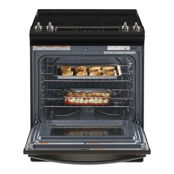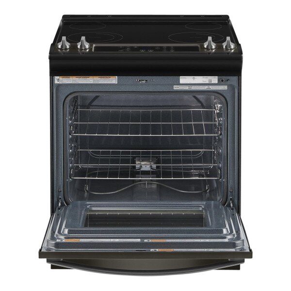 Simplify steps in the cooking process with an electric slide in range that lets you skip preheating for frozen favorites with Frozen Bake™ Technology. Get more flexibility and fast boil times on the cooktop with high wattage FlexHeat™ Dual Radiant Elements. This range is also equipped with a high-temperature, adjustable self clean oven cycle so you can clean without using chemicals.
