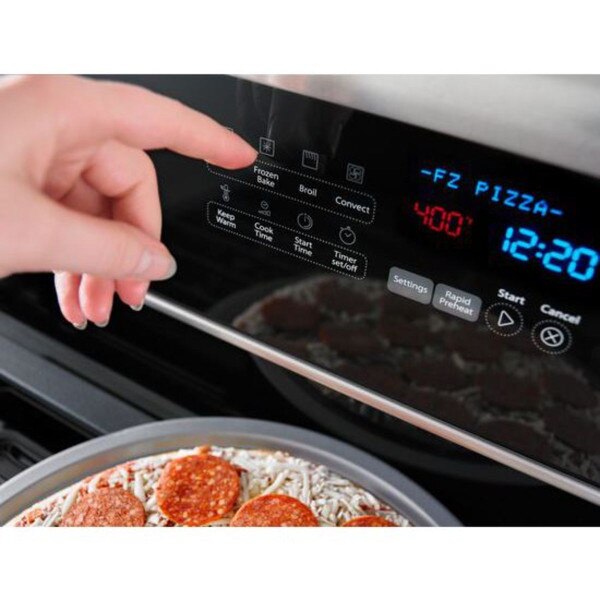 This freestanding electric range is designed to keep dinner time from getting in the way of family time. Cook food faster with true convection cooking. Convection Conversion will do the math for you to adjust cooking temperatures. Skip preheating for favorites like pizza, lasagna, chicken nuggets, fries or pies with Frozen Bake™ technology. The FlexHeat™ triple radiant element is like having three elements in one to fit small pots and pans and make room for larger cookware. And when it's time to clean up, AquaLift® self-cleaning technology provides this kitchen range with odor-free cleaning without harsh chemicals in only 50 minutes.